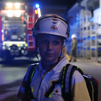 16:00 Uhr: Nach dem Aufstellen der Feldbetten und dem Check der Fahrzeuge ließ der erste Einsatz nicht lange auf sich warten. Eine Person war in einem Waldstück in einen Graben gestürzt und hatte sich am Fuß verletzt, sodass sie nicht mehr selbstständig gehen konnte. Während das Jugendrotkreuz die Erstversorgung übernahm, errichtete die Feuerwehr mit dem Greifzug eine Seilrutsche, um die verletzte Person zu retten.